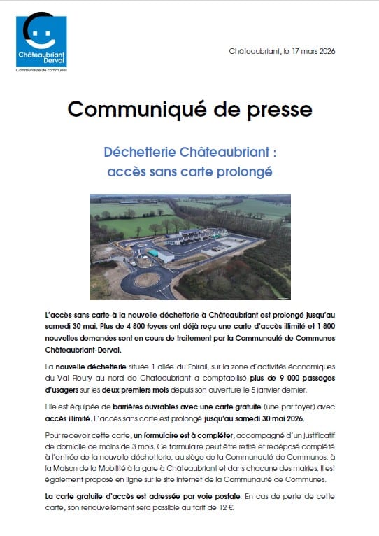 Prolongation de l'accès sans carte à la Déchetterie à Châteaubriant